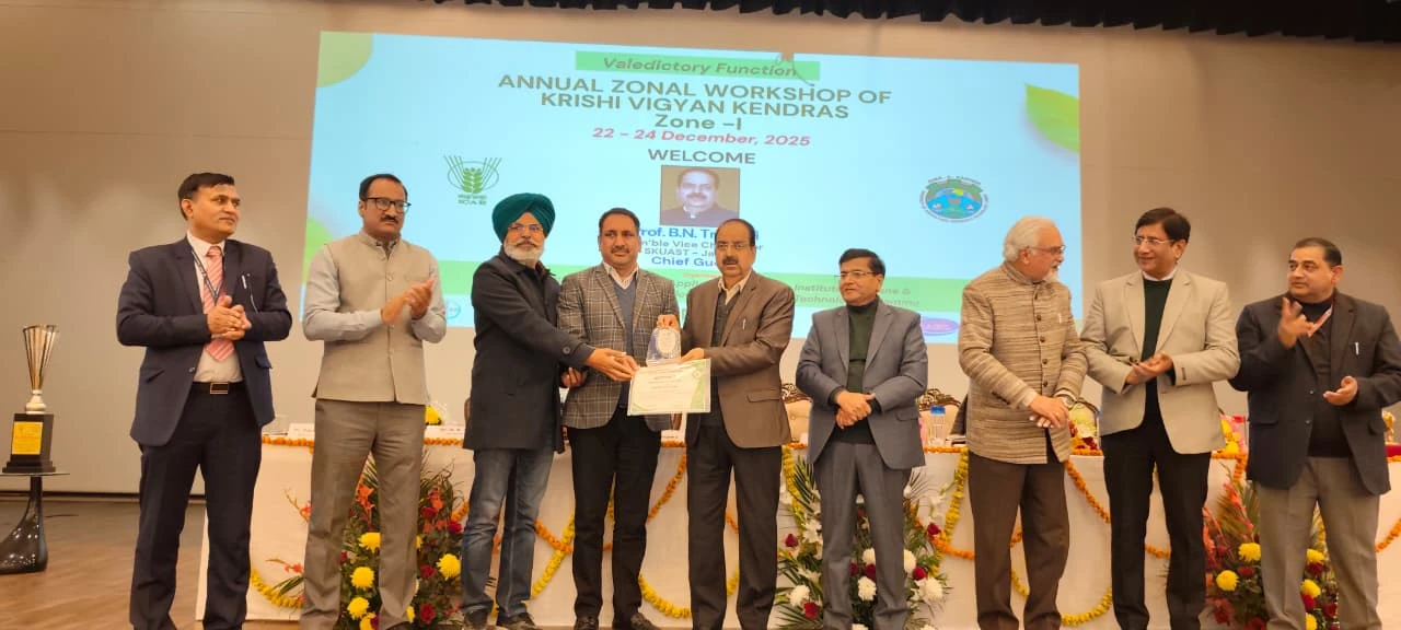 ਰੂਪਨਗਰ, 26 ਦਸੰਬਰ: ਕ੍ਰਿਸ਼ੀ ਵਿਗਿਆਨ ਕੇਂਦਰ ਰੋਪੜ ਨੇ ਕਿਸਾਨਾਂ ਦੀ ਭਲਾਈ ਅਤੇ ਖੇਤੀਬਾੜੀ ਵਿੱਚ ਨਵੀਂ ਤਕਨੀਕਾਂ ਦੇ ਪ੍ਰਸਾਰ ਲਈ ਸ਼ਾਨਦਾਰ ਯੋਗਦਾਨ ਪਾਇਆ ਹੈ। ਇਸ ਯੋਗਦਾਨ ਦੀ ਪ੍ਰਸ਼ੰਸਾ ਕਰਦਿਆਂ ਆਈ.ਸੀ.ਏ.ਆਰ. ਅਟਾਰੀ ਜ਼ੋਨ-1 ਵੱਲੋਂ ਕ੍ਰਿਸ਼ੀ ਵਿਗਿਆਨ ਕੇਂਦਰ ਰੋਪੜ ਨੂੰ ਇਸ ਸਾਲ 2025 ਦੇ ਪੰਜਾਬ ਦੇ ਸਰਵਸ਼੍ਰੇਸ਼ਠ ਕੇ.ਵੀ.ਕੇ. ਵਜੋਂ ਸਨਮਾਨਿਤ ਕੀਤਾ ਗਿਆ ਹੈ।