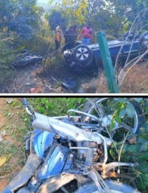 ਗੁਰਦਾਸਪੁਰ ਜ਼ਿਲ੍ਹੇ ਦੇ ਧਾਰੀਵਾਲ ਇਲਾਕੇ ਅਧੀਨ ਪਿੰਡ ਫੱਜੂਪੁਰ (ਪਠਾਨਕੋਟ-ਅੰਮ੍ਰਿਤਸਰ ਨੈਸ਼ਨਲ ਹਾਈਵੇ) ‘ਤੇ ਇੱਕ ਭਿਆਨਕ ਸੜਕ ਹਾਦਸਾ ਵਾਪਰ ਗਿਆ। ਤੇਜ਼ ਗਤੀ ਨਾਲ ਆ ਰਹੀ ਇੱਕ ਕਾਰ ਨੇ ਮੋਟਰਸਾਈਕਲ ਨੂੰ ਜ਼ੋਰਦਾਰ ਟੱਕਰ ਮਾਰ ਦਿੱਤੀ, ਜਿਸ ਕਾਰਨ ਕਾਰ ਬੇਕਾਬੂ ਹੋ ਕੇ ਸੜਕ ਕਿਨਾਰੇ ਪਲਟ ਗਈ, ਜਦਕਿ ਮੋਟਰਸਾਈਕਲ ਪੂਰੀ ਤਰ੍ਹਾਂ ਤਬਾਹ ਹੋ ਗਈ।