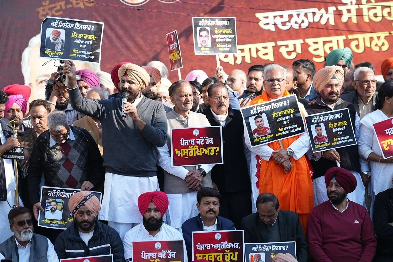 ਸੂਬੇ ਵਿੱਚ ਵਿਗੜਦੀ ਕਾਨੂੰਨ-ਵਿਵਸਥਾ ਦੀ ਸਥਿਤੀ ਦੇ ਮਾਮਲੇ ‘ਤੇ ਪ੍ਰਦਰਸ਼ਨ ਦੌਰਾਨ ਆਗੂਆਂ ਨੇ ਕਿਹਾ ਕਿ ਮੁੱਖ ਮੰਤਰੀ ਭਗਵੰਤ ਸਿੰਘ ਮਾਨ ਦੀ ਅਗਵਾਈ ਵਾਲੀ ਆਮ ਆਦਮੀ ਪਾਰਟੀ ਦੀ ਸਰਕਾਰ ਲੋਕਾਂ ਦੀ ਜਾਨ-ਮਾਲ ਦੀ ਰਾਖੀ ਕਰਨ ਵਿੱਚ ਨਾਕਾਮ ਰਹੀ ਹੈ। ਉਨ੍ਹਾਂ ਨੇ ਅਪਰਾਧੀਆਂ ਅਤੇ ਗੈਂਗਸਟਰਾਂ ਵੱਲੋਂ ਹੱਤਿਆਵਾਂ ਦੀਆਂ ਘਟਨਾਵਾਂ ਦਾ ਹਵਾਲਾ ਦਿੰਦਿਆਂ, ਕਿਹਾ ਕਿ ਸਰਕਾਰ ਇਸ ਮਾਮਲੇ ਵਿੱਚ ਬੇਖ਼ਬਰ ਦਿਖਾਈ ਦੇ ਰਹੀ ਹੈ।