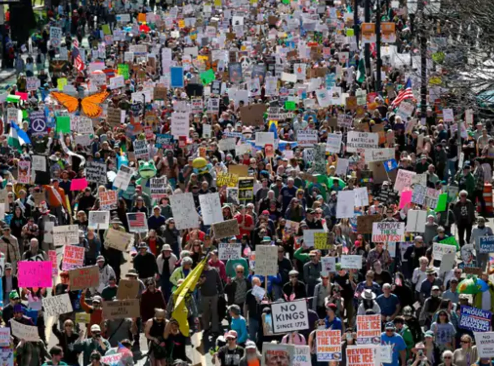 ਅਮਰੀਕਾ ਵਿੱਚ ਰਾਸ਼ਟਰਪਤੀ Donald Trump ਦੇ ਖ਼ਿਲਾਫ਼ ਵੱਡੇ ਪੱਧਰ ‘ਤੇ ਲੋਕਾਂ ਨੇ ਆਪਣਾ ਗੁੱਸਾ ਜਤਾਇਆ। “ਨੋ ਕਿੰਗਜ਼ ਰੈਲੀ” ਦੇ ਨਾਂ ‘ਤੇ ਕੀਤੇ ਗਏ ਇਸ ਦੇਸ਼-ਵਿਆਪੀ ਪ੍ਰਦਰਸ਼ਨ ਵਿੱਚ ਕਰੀਬ 80 ਲੱਖ ਲੋਕ ਸ਼ਾਮਲ ਹੋਏ, ਜੋ ਕਿ ਹਾਲੀਆ ਸਮੇਂ ਦਾ ਸਭ ਤੋਂ ਵੱਡਾ ਵਿਰੋਧ ਮੰਨਿਆ ਜਾ ਰਿਹਾ ਹੈ। ਇਹ ਪ੍ਰਦਰਸ਼ਨ ਸਾਰੇ 50 ਰਾਜਾਂ ਵਿੱਚ 3,300 ਤੋਂ ਵੱਧ ਥਾਵਾਂ ‘ਤੇ ਆਯੋਜਿਤ ਕੀਤੇ ਗਏ।