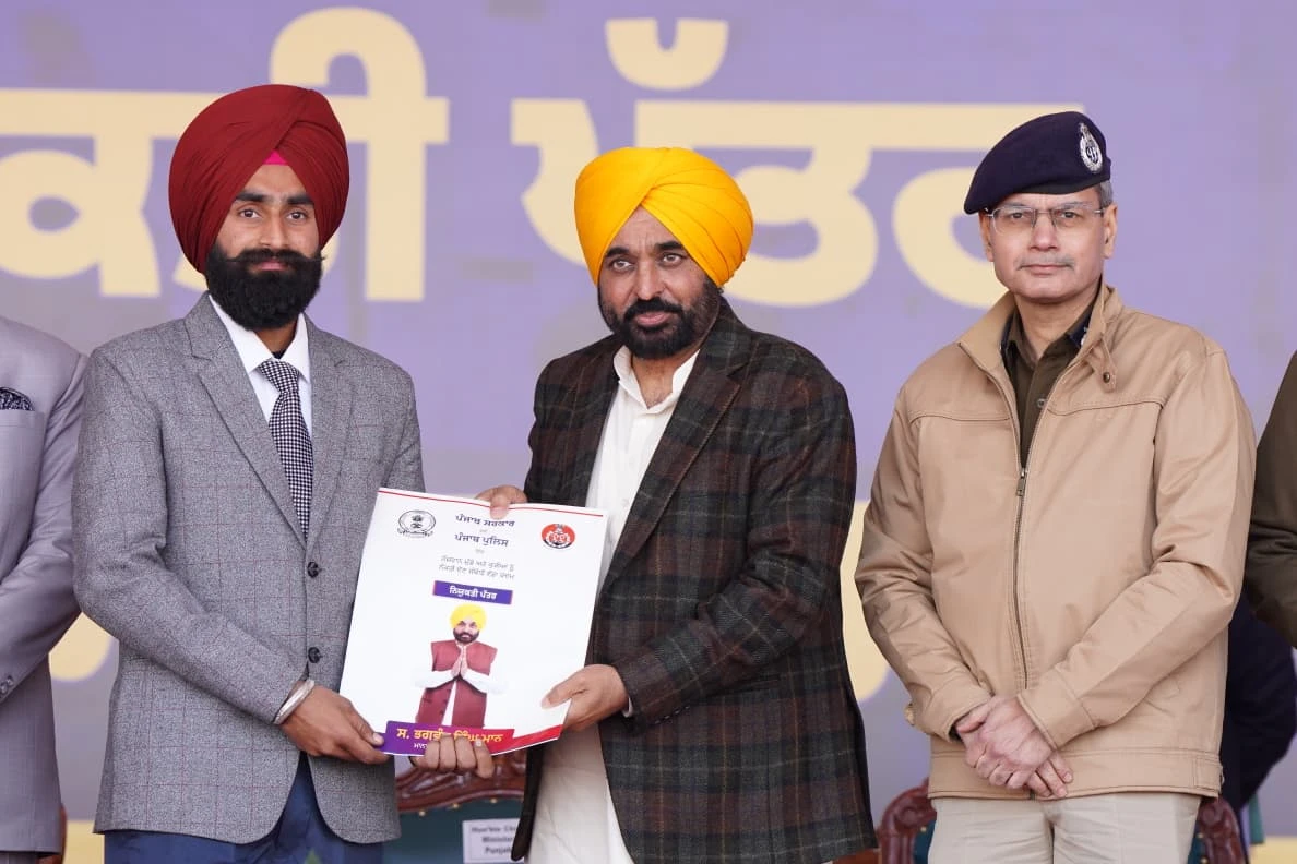 ਪੰਜਾਬ ਸਰਕਾਰ 16 ਮਾਰਚ, 2022 ਤੋਂ ਰੋਜ਼ਾਨਾ ਔਸਤਨ 45 ਨੌਜਵਾਨਾਂ ਨੂੰ ਸਰਕਾਰੀ ਨੌਕਰੀਆਂ ਪ੍ਰਦਾਨ ਕਰ ਰਹੀ ਹੈ, ਜਿਸ ਨਾਲ ਚਾਰ ਸਾਲਾਂ ਤੋਂ ਵੀ ਘੱਟ ਸਮੇਂ ਵਿੱਚ 63,027 ਨਿਯੁਕਤੀਆਂ ਕਰਕੇ ਇਤਿਹਾਸ ਰਚਿਆ ਗਿਆ ਹੈ। ਇਹ ਸਮੂਹਿਕ ਭਰਤੀ ਨਾ ਸਿਰਫ਼ ਪੰਜਾਬ ਪੁਲਿਸ ਨੂੰ ਮਜ਼ਬੂਤ ਕਰਦੀ ਹੈ, ਸਗੋਂ ਯੋਗਤਾ-ਆਧਾਰਤ, ਪਾਰਦਰਸ਼ੀ ਭਰਤੀ ਦੇ ਸਪੱਸ਼ਟ ਸੰਦੇਸ਼ ਨੂੰ ਵੀ ਮਜ਼ਬੂਤ ਕਰਦੀ ਹੈ, ਜਦੋਂ ਕਿ ਨਵੀਂ ਸ਼ਾਮਲ ਕੀਤੀ ਗਈ ਫੋਰਸ ਨੂੰ ਨਸ਼ਿਆਂ, ਸਾਈਬਰ ਅਪਰਾਧ ਅਤੇ ਗੈਂਗਸਟਰਾਂ ਵਿਰੁੱਧ ਲੜਾਈ ਵਿੱਚ ਫੈਸਲਾਕੁੰਨ ਭੂਮਿਕਾ ਨਿਭਾਉਣ ਦਾ ਕੰਮ ਸੌਂਪਿਆ ਗਿਆ ਹੈ।