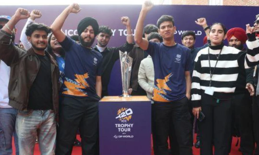 ਆਈਸੀਸੀ ਟੀ20 ਵਿਸ਼ਵ ਕੱਪ 2026 ਦੀ ਸ਼ੁਰੂਆਤ 7 ਫ਼ਰਵਰੀ ਤੋਂ ਹੋਣ ਜਾ ਰਹੀ ਹੈ, ਜਿਸ ਨੂੰ ਲੈ ਕੇ ਦੇਸ਼ ਭਰ ਵਿੱਚ ਕ੍ਰਿਕੇਟ ਪ੍ਰੇਮੀਆਂ ਵਿੱਚ ਭਾਰੀ ਉਤਸ਼ਾਹ ਦੇਖਿਆ ਜਾ ਰਿਹਾ ਹੈ। ਇਸੀ ਕੜੀ ਤਹਿਤ ਸੋਮਵਾਰ ਨੂੰ ਟੀ20 ਵਿਸ਼ਵ ਕੱਪ ਦੀ ਚਮਕਦਾਰ ਟਰੌਫ਼ੀ ਚੰਡੀਗੜ੍ਹ ਯੂਨੀਵਰਸਿਟੀ ਦੇ ਘੜੂੰਆ ਕੈਂਪਸ ਵਿੱਚ ਪਹੁੰਚੀ, ਜਿੱਥੇ ਇਸਦਾ ਭਵ੍ਯ ਅਤੇ ਸ਼ਾਨਦਾਰ ਸਵਾਗਤ ਕੀਤਾ ਗਿਆ।